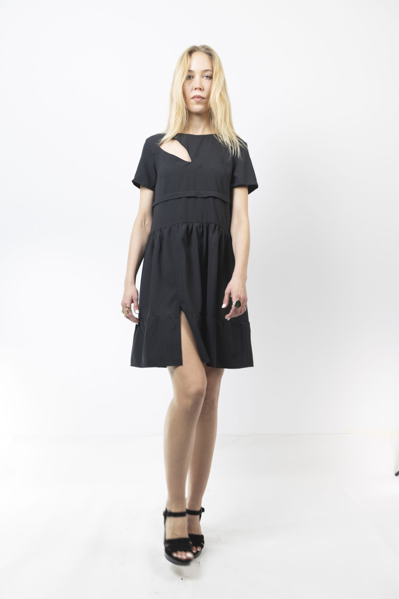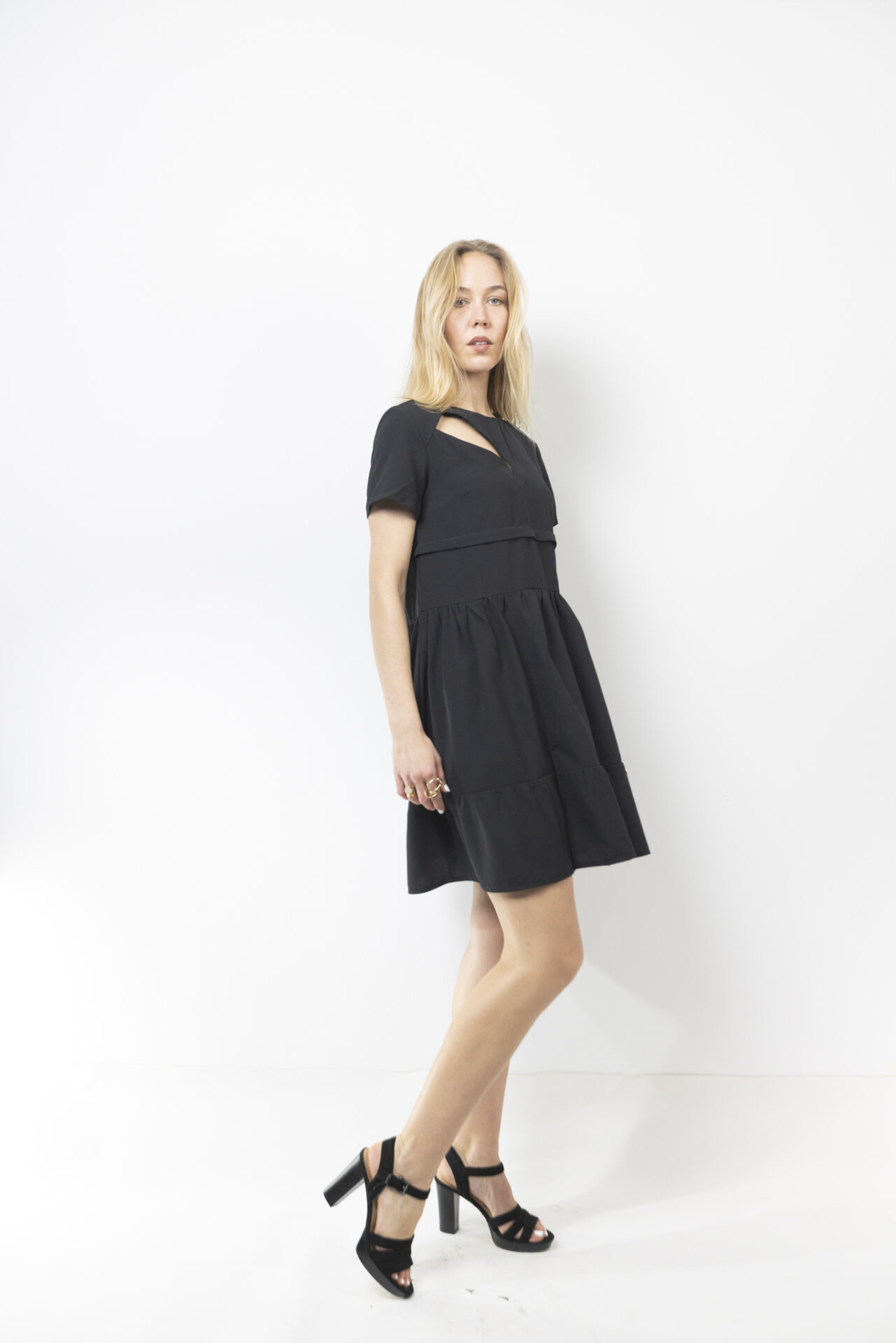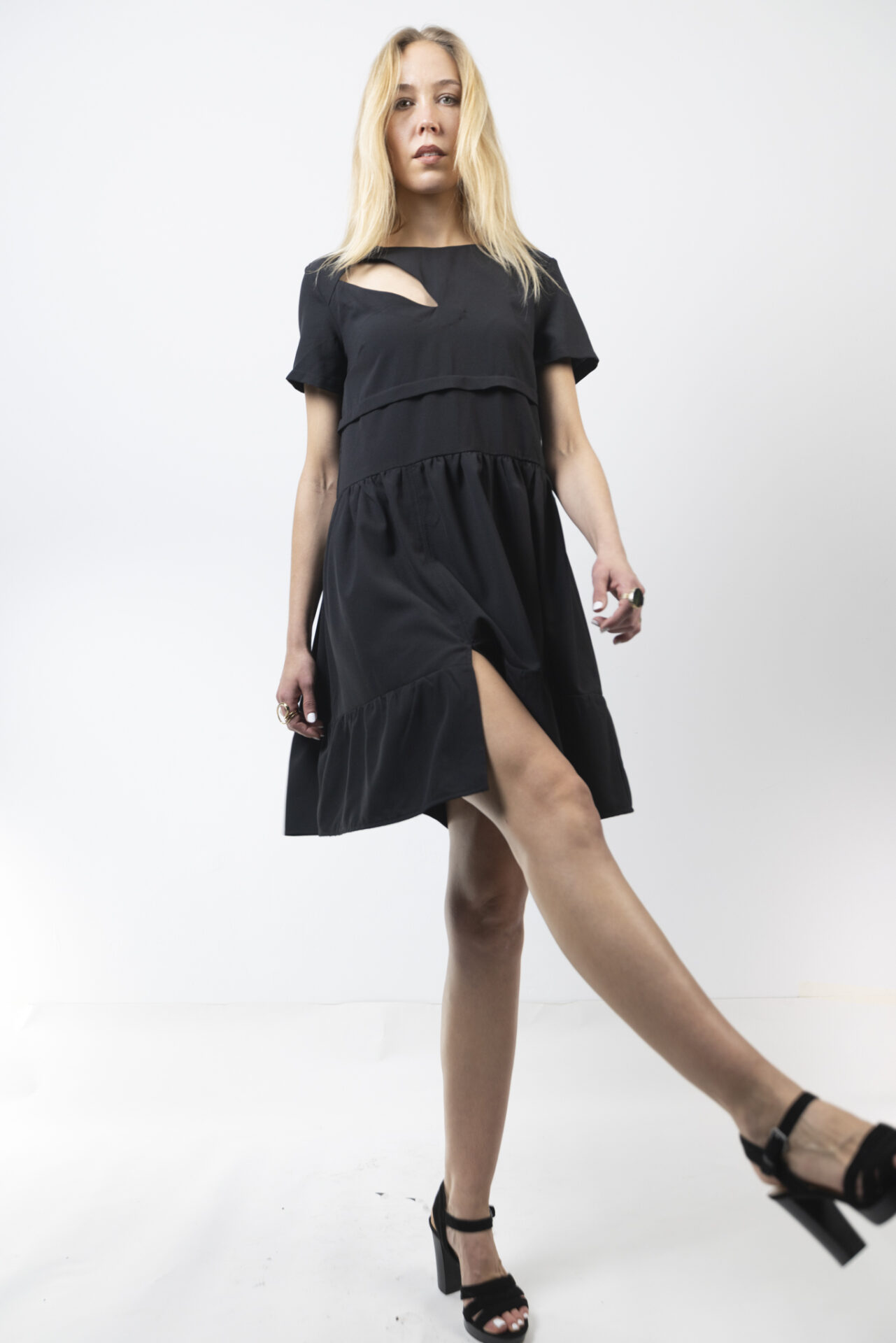 Μαύρο κοντομάνικο φόρεμα, ένα statement κομμάτι που τραβά τα βλέμματα και απογειώνει κάθε look.