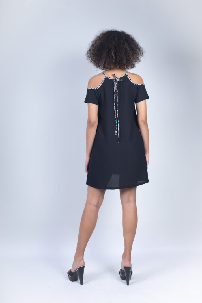 Το φόρεμα φτάνει πάνω από το γόνατο, προσφέροντας μία σικ και άνετη γραμμή.